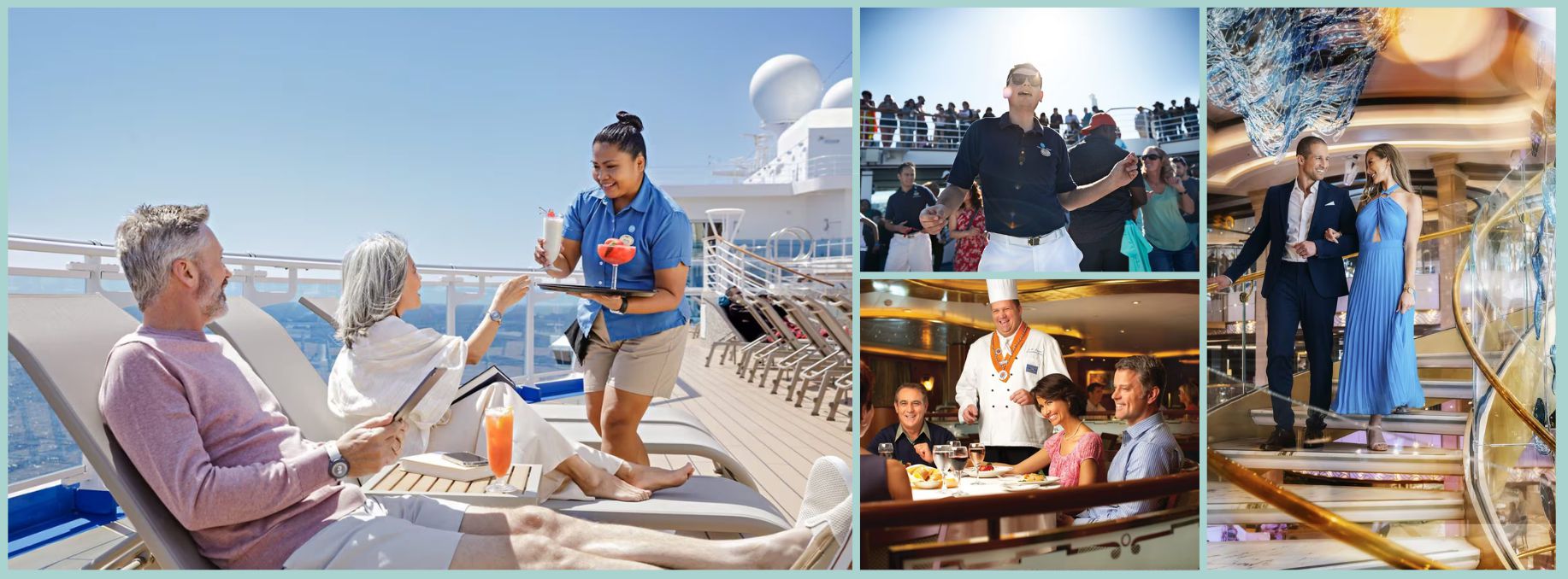 With an atmosphere of comfortable elegance, tantalizing dining options and dazzling entertainment, your stay on board Grand Princess will be anything but ordinary. Enjoy Movies Under the Stars® poolside or dine on tantalizing cuisine at venues like Crown Grill and more.