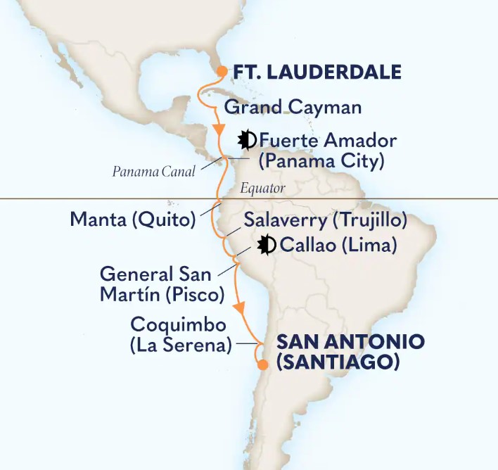 Discover historic landmarks, golden beaches and lush rainforests. Transit the Panama Canal. Enjoy extra time for sightseeing with overnights in Panama and Peru.