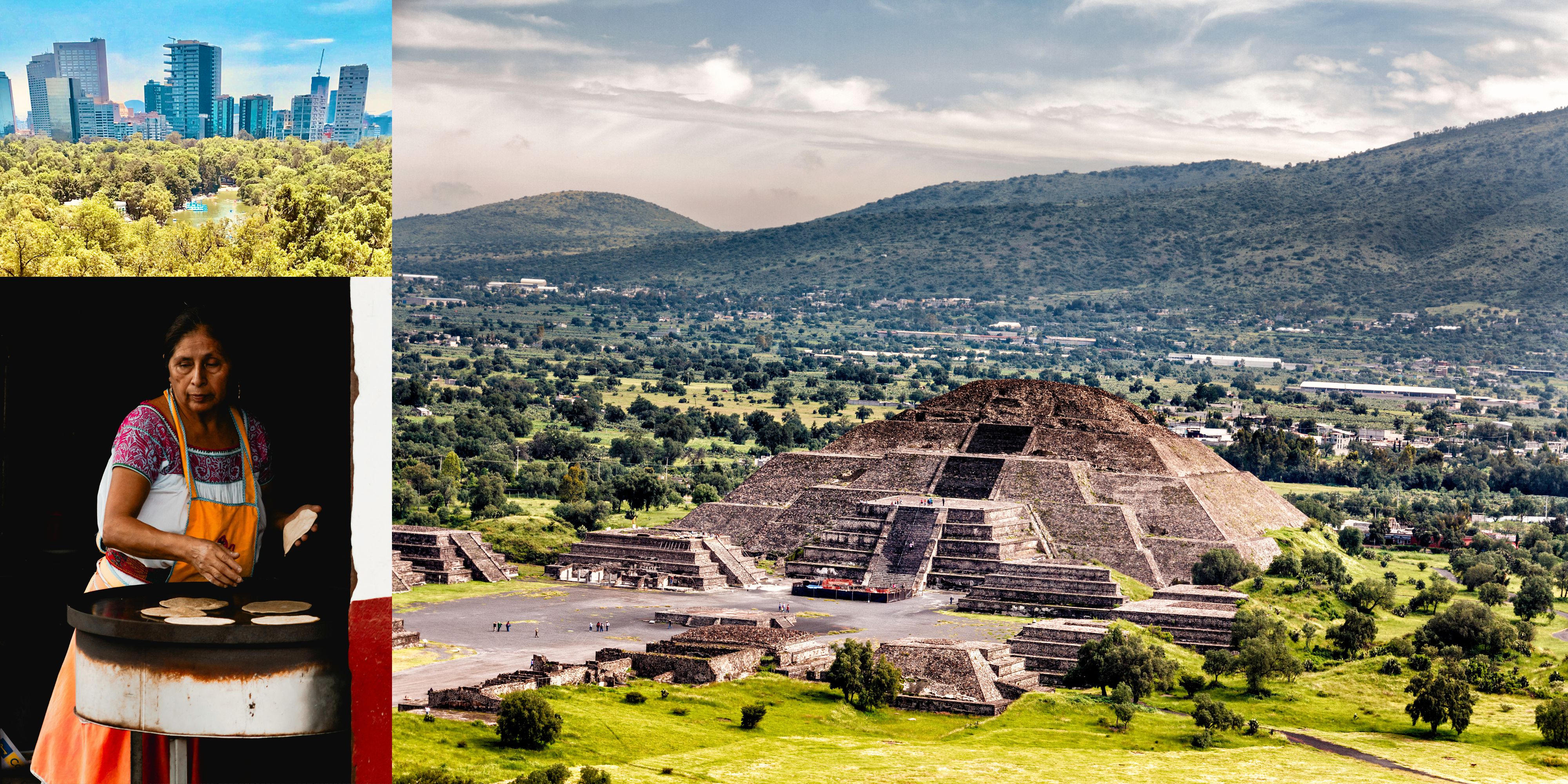 Discover the ancient ruins at Teotihuacan. Visit the Pyramids of the Sun and Moon, followed by a home-cooked lunch with a local family.