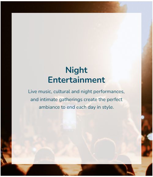 • Entertainment every night, from live shows to themed events.
