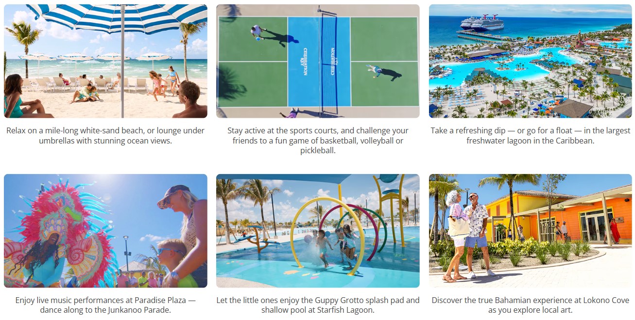 Celebration Key™ is just one of a family of exclusive cruise destinations, with each one showcasing a different side of paradise, featuring top beaches, excursions and more.