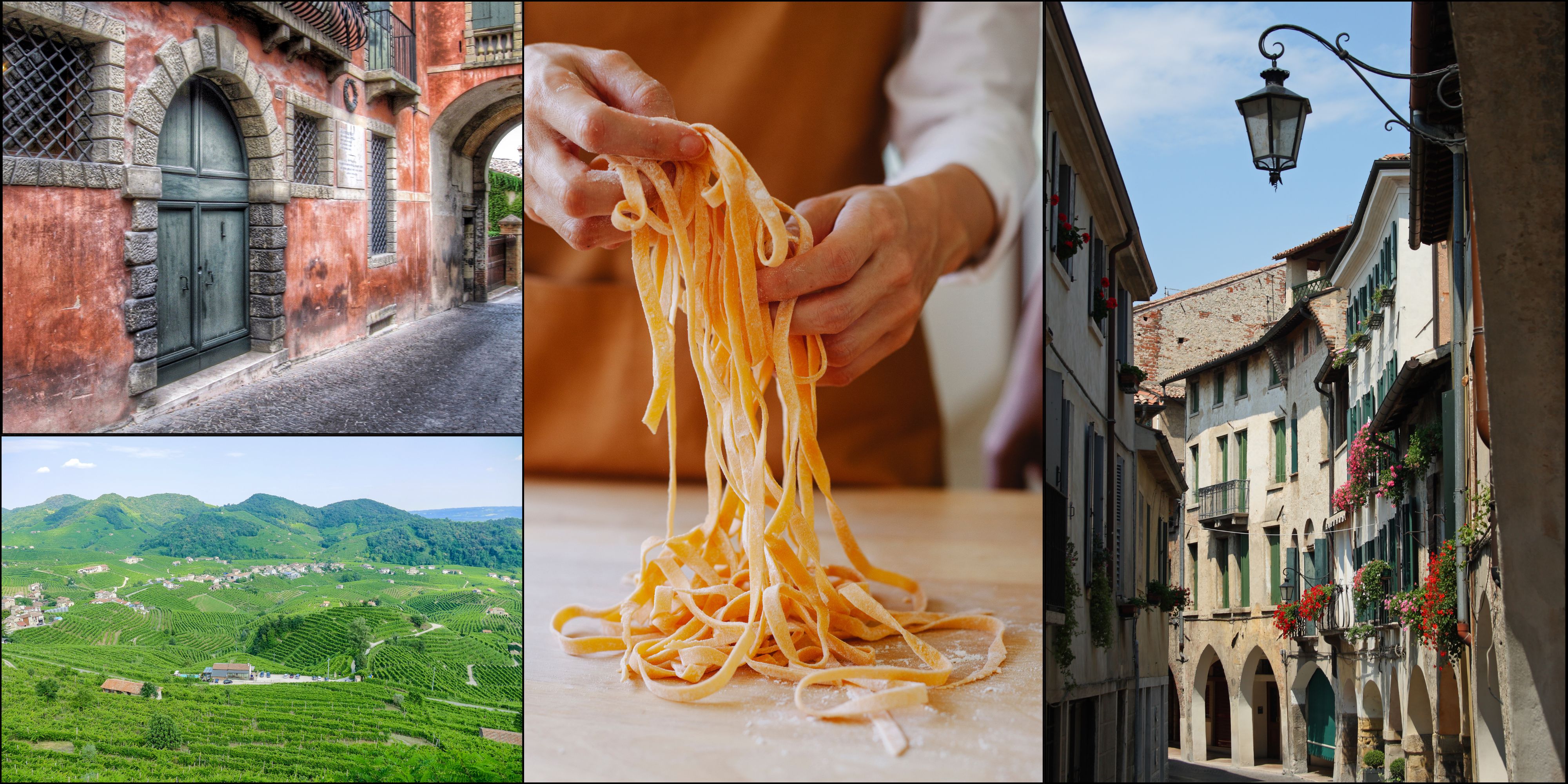 Get to know a hilltop haven for artists today in Asolo. After your Tour Manager helps you get acquainted with the village during an orientation walk, enjoy some free time. Find inspiration and trace the steps of author Ernest Hemingway, poet Robert Browning, composer Igor Stravinsky, and many other famous virtuosos throughout history. Later, continue your journey into the rolling hills of Italy’s Prosecco region (UNESCO) for a visit to a local vineyard, where you’ll taste the region’s sparkling specialty. Roll up your sleeves and learn how to make a traditional pasta recipe under the expert guidance of a bona fide Italian nonna (grandmother). Enjoy your pasta dish with a tasting of wines, toasting to la dolce vita - the sweet life - in the Venetian countryside. Return to your hotel in the late evening. Rest well tonight; tomorrow is a full day exploring the Dolomites.