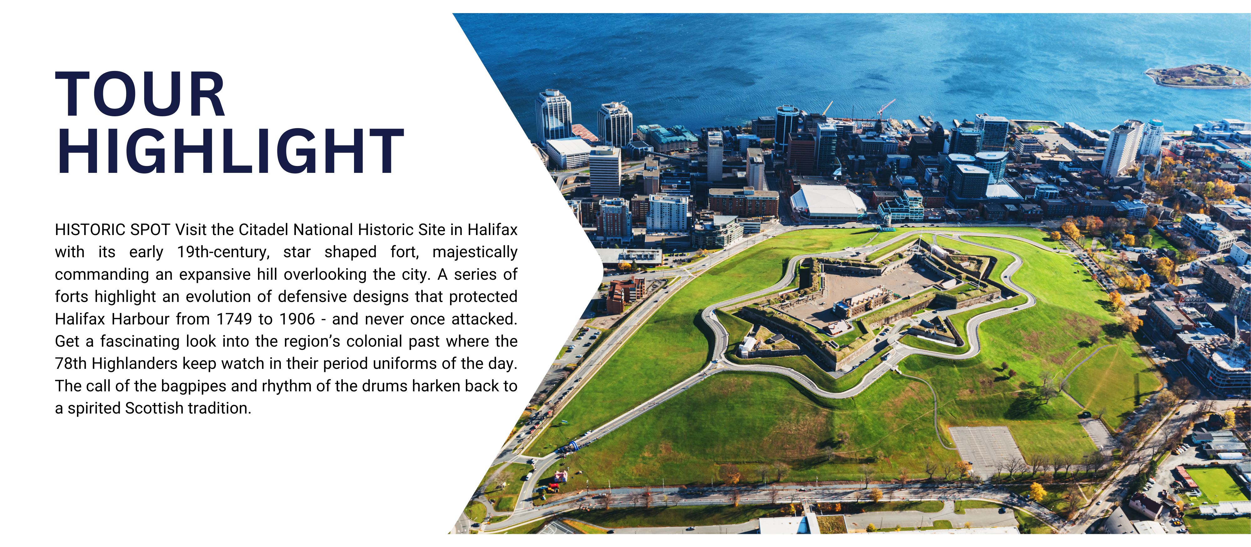 Cross over the Canso Causeway and continue across Nova Scotia to Halifax and visit the Citadel Hill National Historic Site. Tonight, join your Tour Director and new friends at a farewell dinner—the perfect finale to your Maritimes vacation.